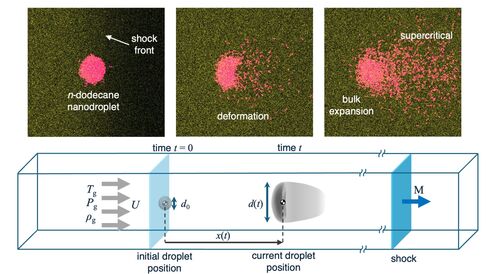 In multiphase detonation, liquid or solid fuels (e.g. hydrocarbons, biofuels, dehydrated plant waste) are impacted by Mach 5 shock waves. The shock waves and high-speed flow behind them deposit momentum and energy to the fuel, leading to its rapid acceleration and vaporisation, while decomposition and oxidation reactions are occurring. This rapid energy transfer mechanism is characterised by non-equilibrium and supercritical behaviours, which couple with with drag, phase change and chemistry. Molecular simulations of the interaction of high-speed flows with droplets, particles and gas-liquid or gas-solid interfaces can be employed to understand the physics of rapid momentum and energy transfer and inspire analytical models for use in continuum simulations.